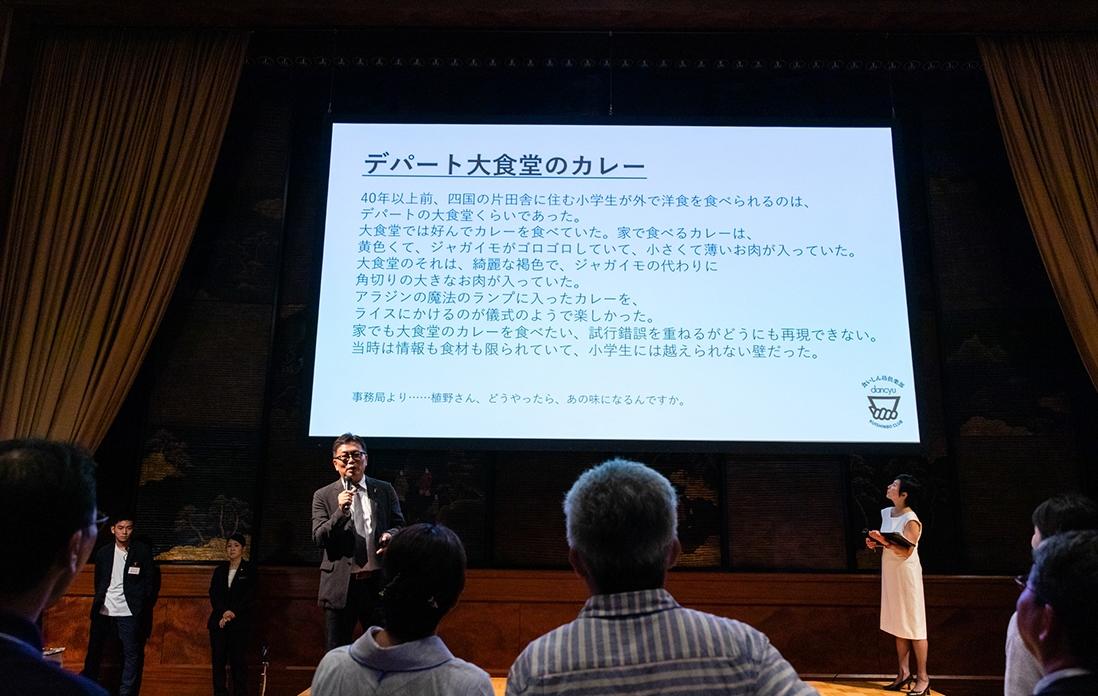 みなさんのお腹も膨れてきた頃、事前に会員の方々から募集をしていた「私の思い出カレー」と「あったらいいな缶詰」のアイディアを発表しました。