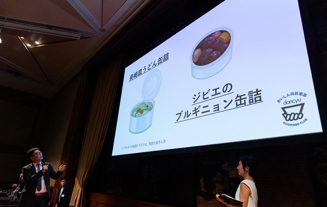 さらに缶詰のアイディアを実際に形にしていただく、高知県の黒潮町缶詰製作所の友永公生さんも高知から駆けつけてくれて、倶楽部のメンバーから送られてきたアイディアを基に進めている試作状況などを説明してくれました。