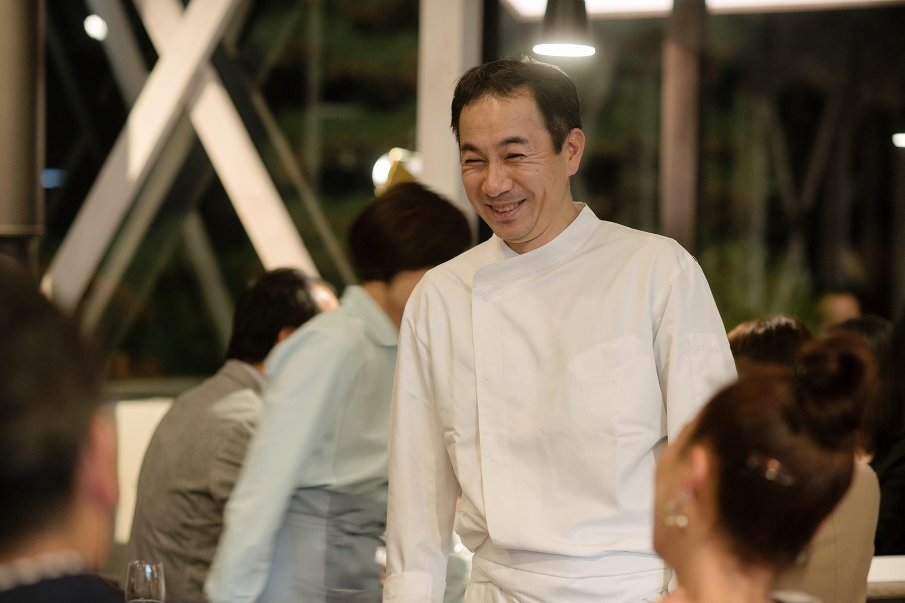 では、僕がここにいると料理が出ないので(笑)、キッチンに戻ります!ゆっくり食事を愉しんでください」