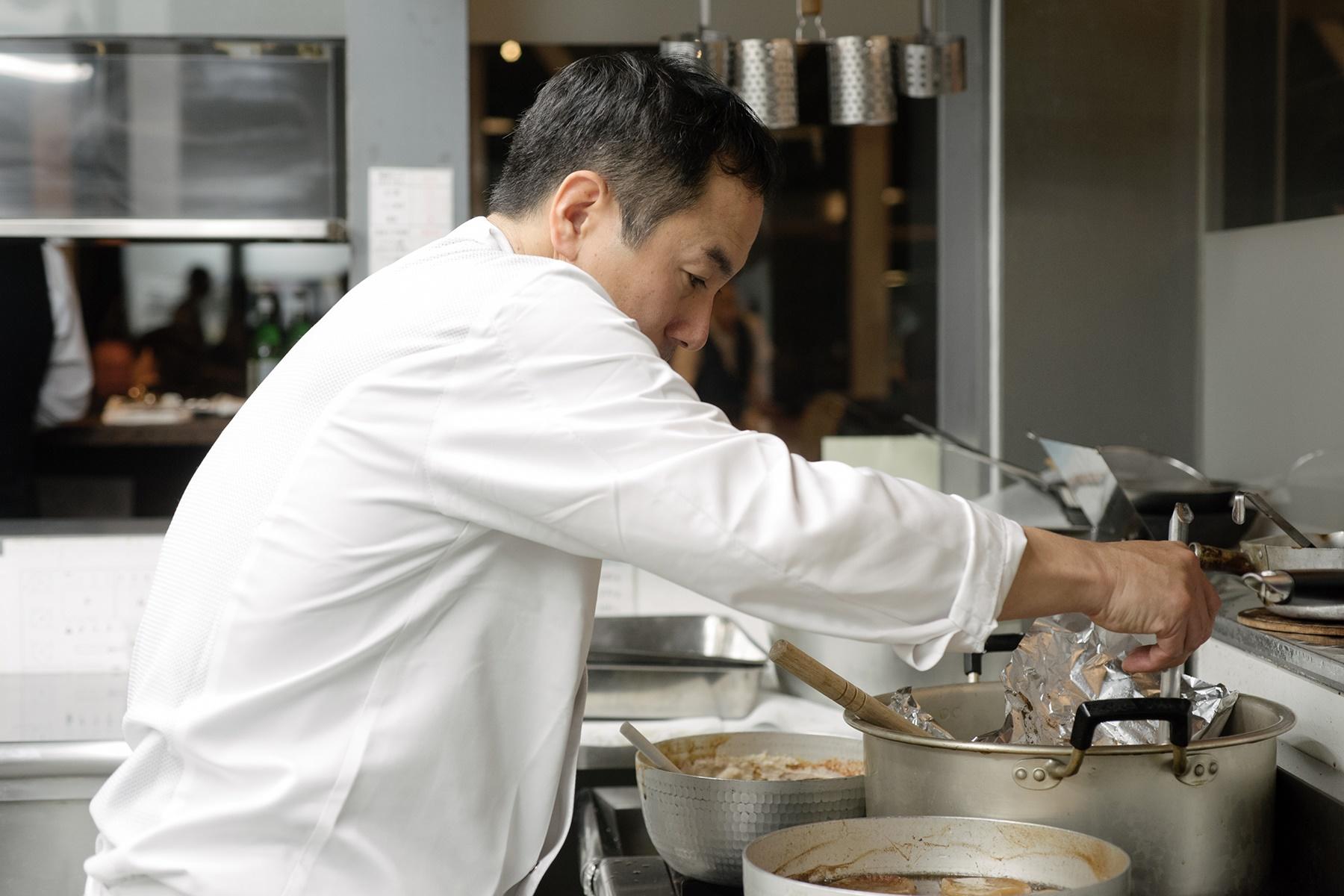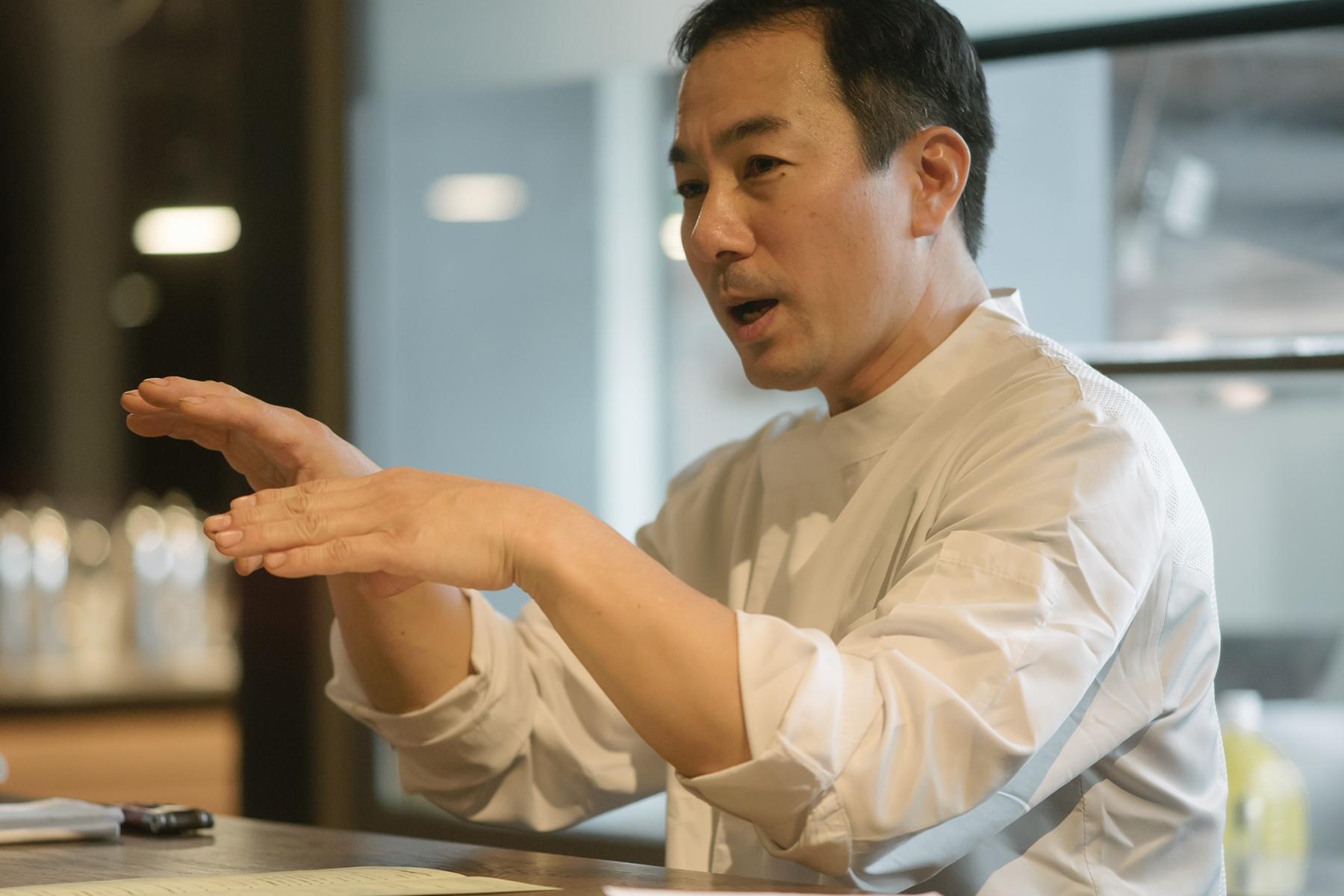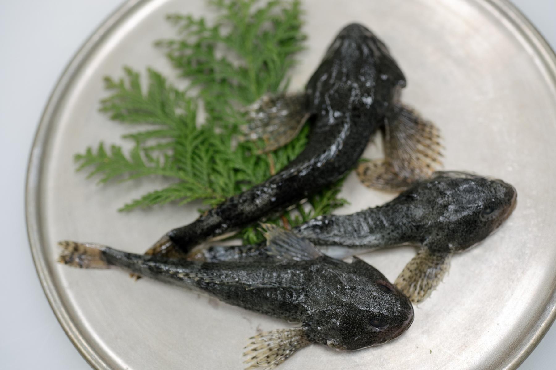 「みなさん、アラレガコって知っていますか?僕はずっと気になっていた食材ですが、使うのは今回が初めてです。アラレガコはカジカの仲間で、淡水の川底に棲むあまり泳がない魚です。鬼のような顔のせいであまり人気がないんですね。でもスゴイおいしい魚なんですよ!そもそも僕が興味をもったのは、小学校からの愛読書『釣りキチ三平』に幻の魚としてアラレガコ、別名・鮎かけが出てくるからなんです。鮎を餌としている魚がいるという話で登場した、口のところにある牙で鮎を掛ける伝説の魚。おいしい鮎を食べているのだから、おいしくないわけないじゃないですか!」