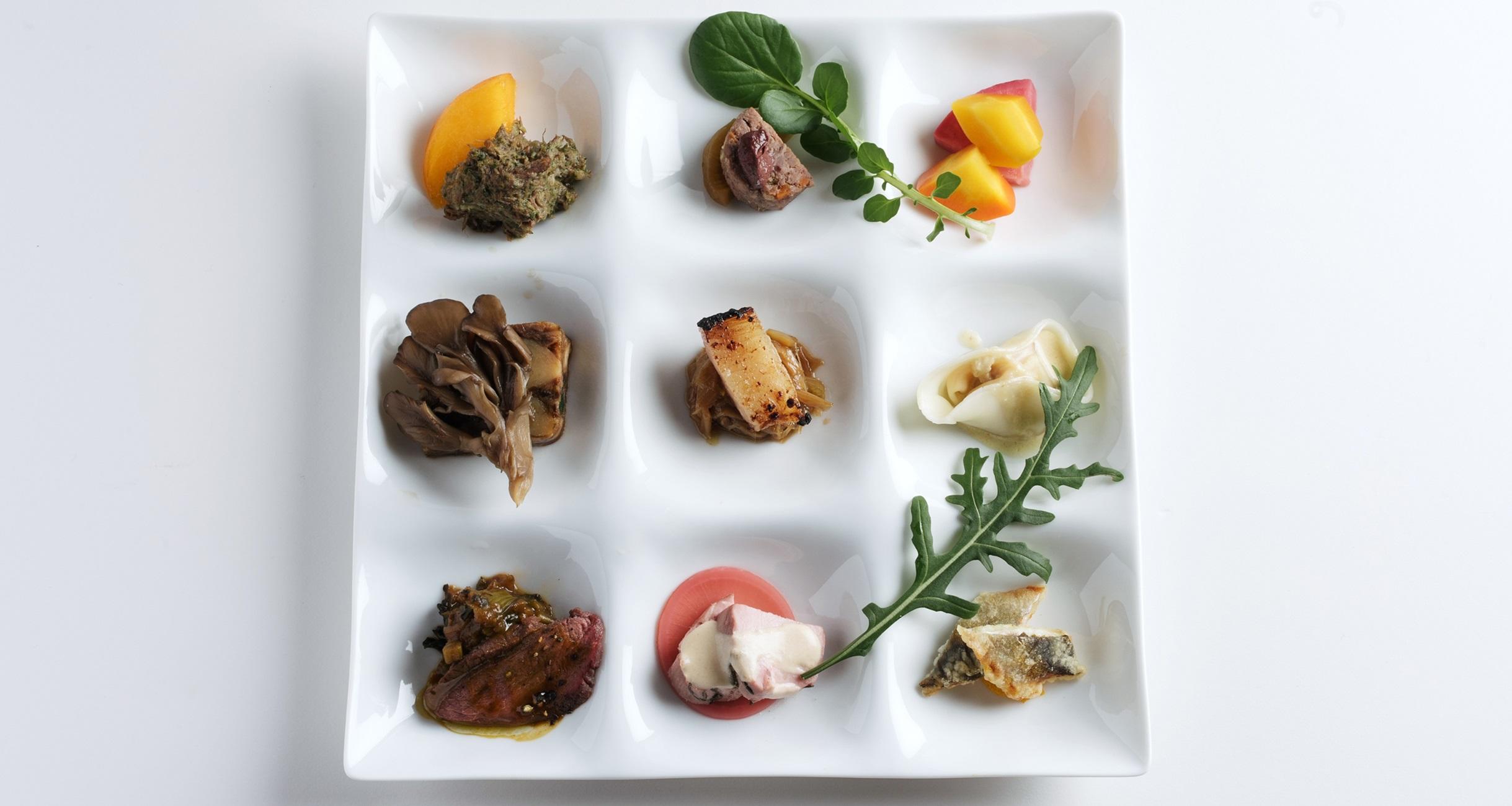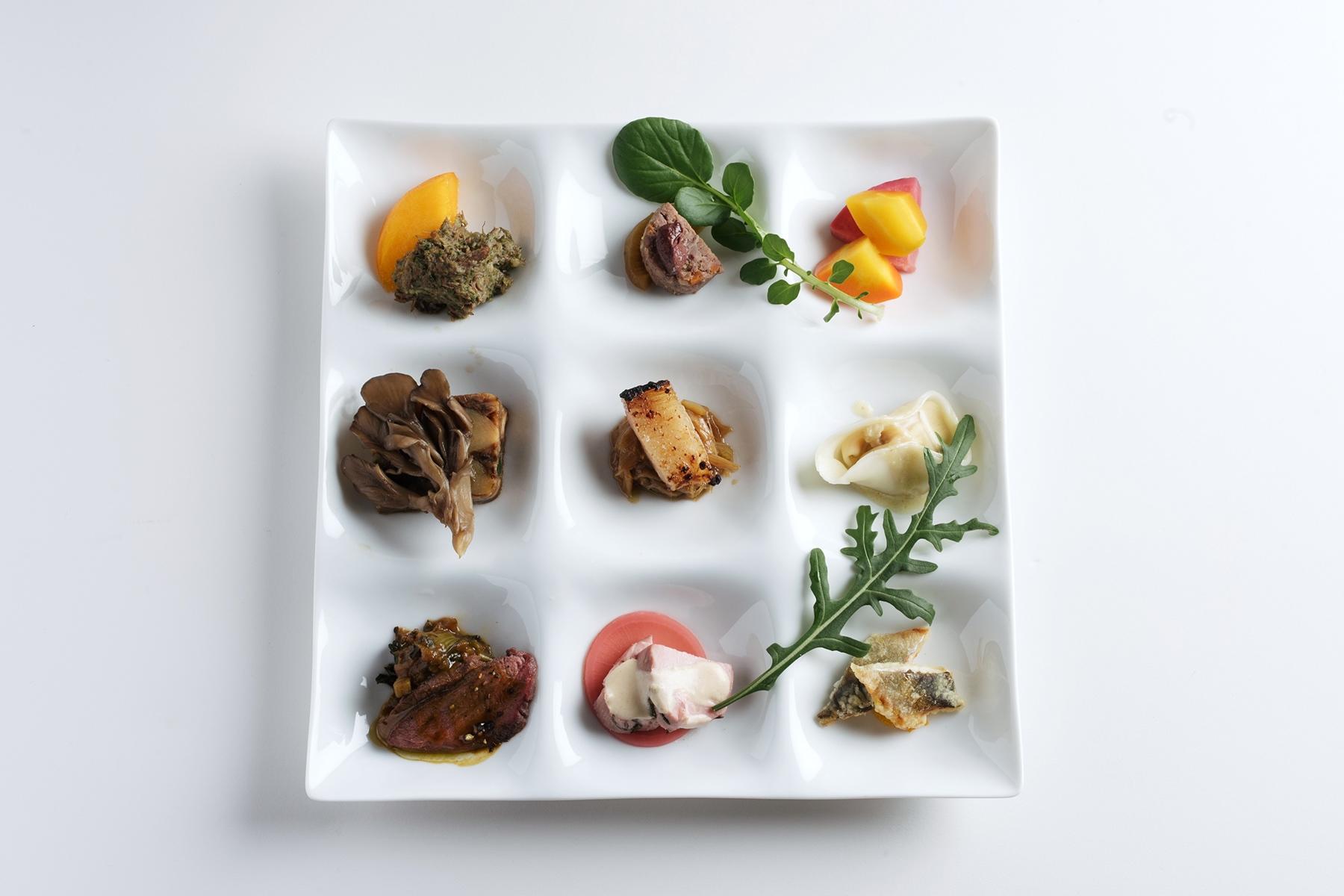 そして前菜が登場。有馬シェフがひとつひとつ丁寧な説明を加える。