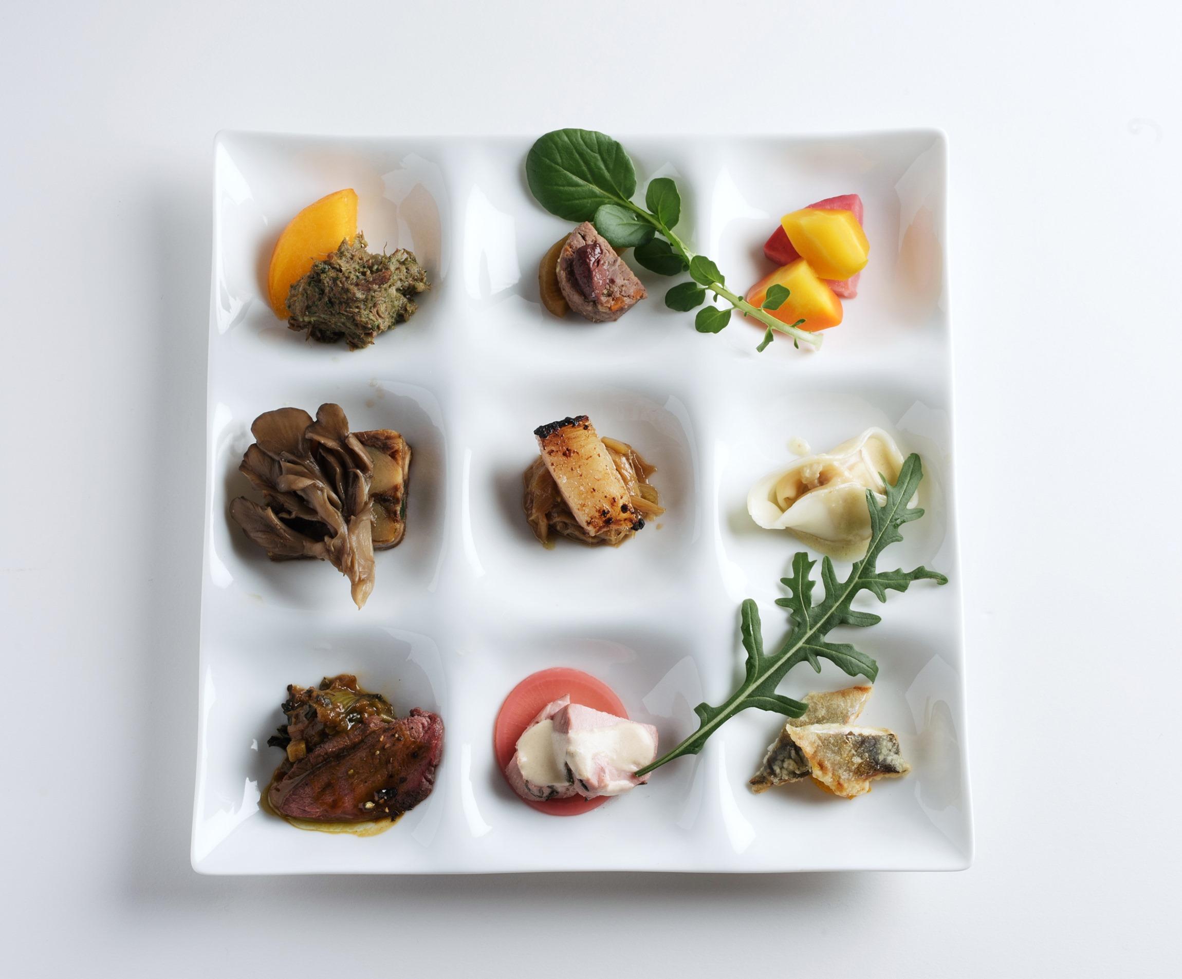 「九頭竜舞茸とツキノワグマの肉を炊き、それをギューッと煮詰めて押し固めたテリーヌです。ツキノワグマがおそらく餌にしているであろう、むかご、じゃがいもなど季節の食材を一緒に合わせてお料理しています」