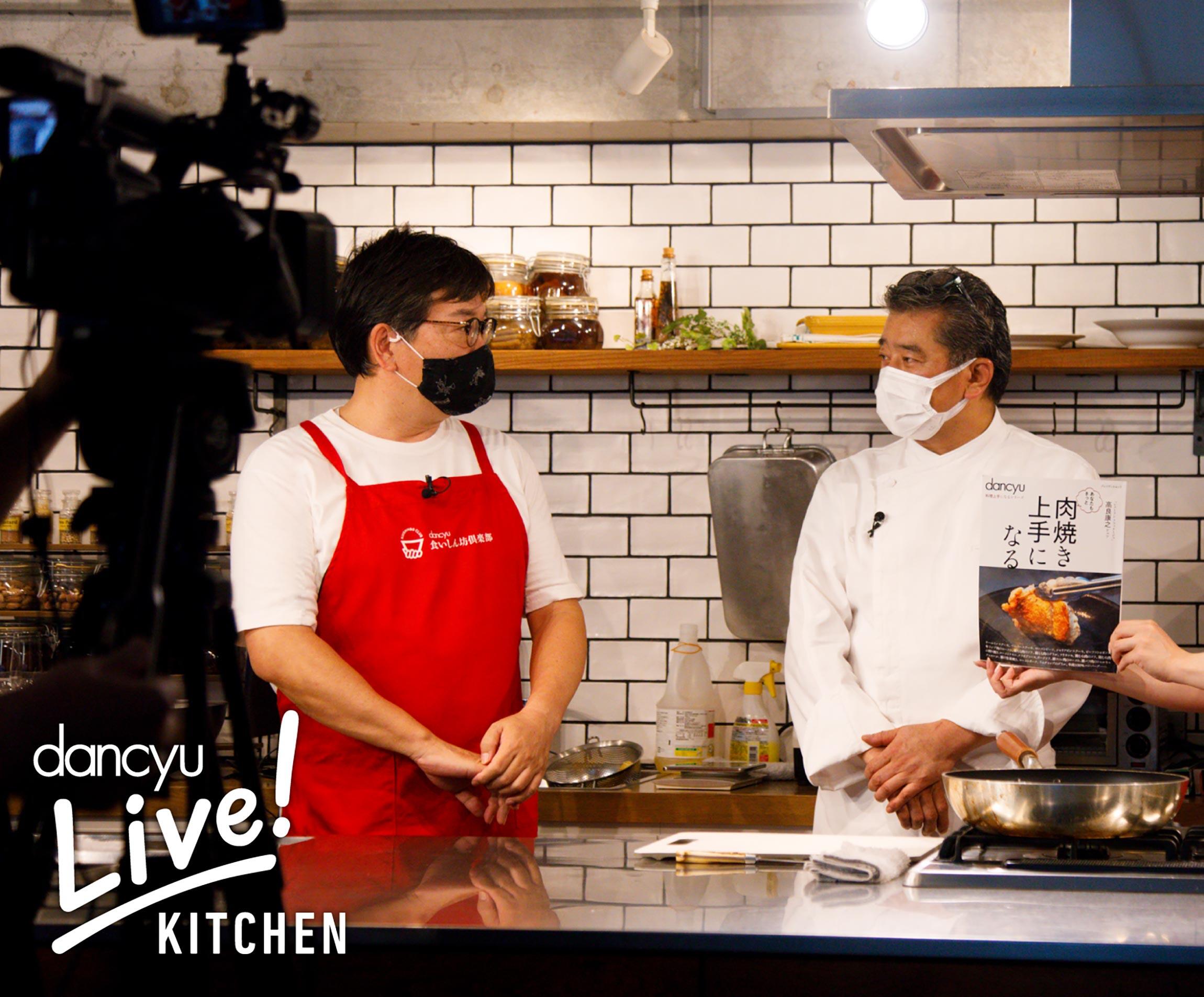 第7回「dancyu Live!キッチン」は、東京・銀座「レストラン ラフィナージュ」の高良康之シェフをむかえ、dancyuムック「肉焼き上手になる」と連動した牛肉と鶏肉の美味しい焼き方を配信しました。