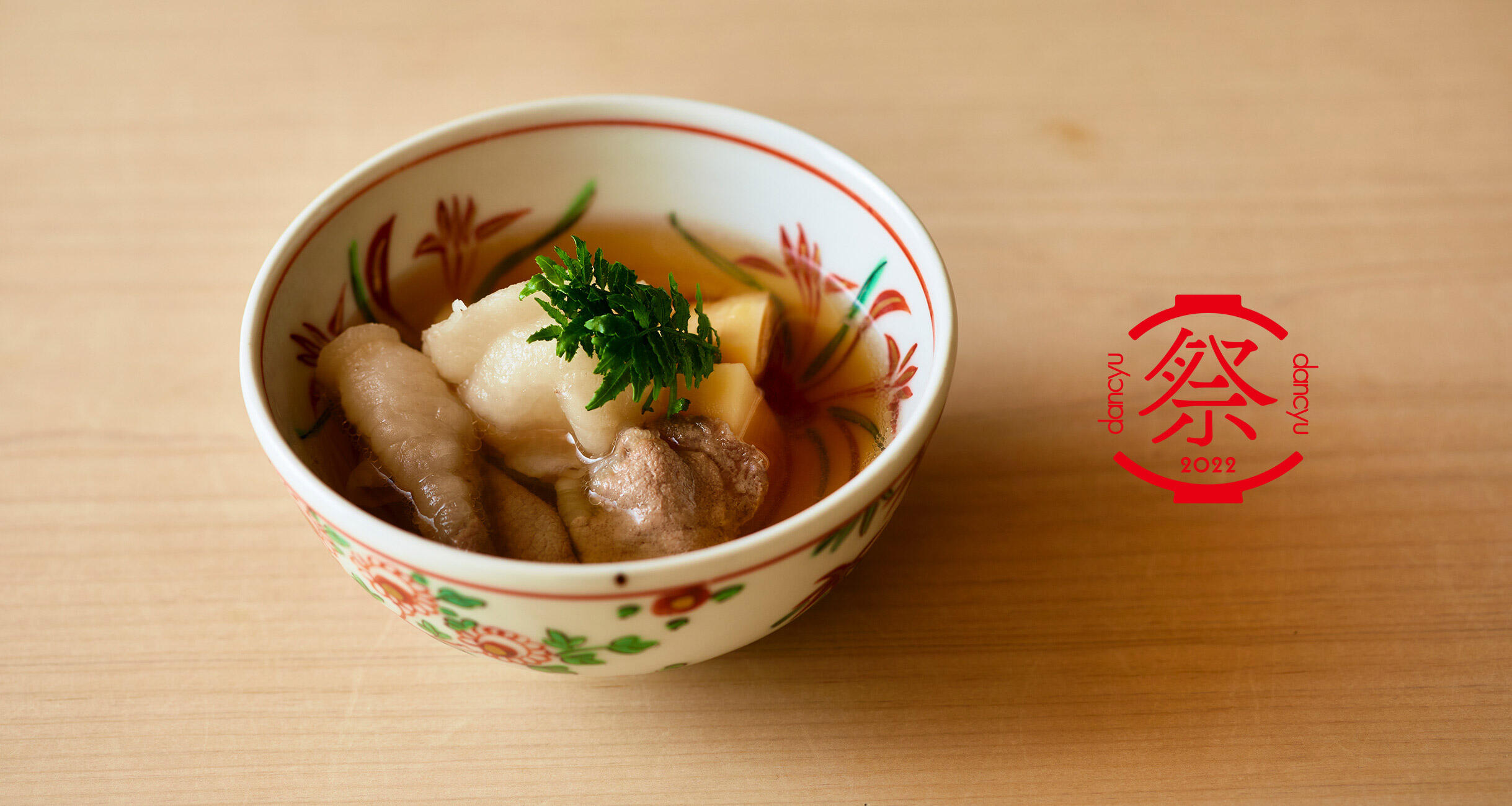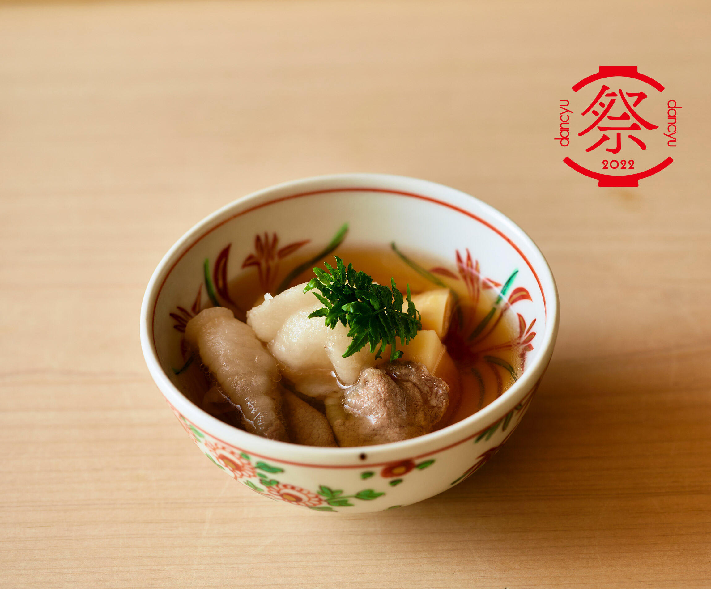 今回dancyu祭で出す“猪汁”は、「小室」のコースのメイン料理ともなる一品。和食店で肉が出るなら牛。そんなイメージが多くの人の頭にあると思うが、意外や意外、小室さんはジビエを使うことも少なくない。なかでも猪は秀逸だ。“猪肉”と言っても、個体によって味にばらつきがある印象だが、そこはさすが「小室」である。猪肉を初めて食べる人や、過去にあまりいいイメージを持っていない人の気持ちをも覆す、上質のものしか使わない。小室さんの目利きあっての安心感ある美味しさだ。しっかり蓄えられた脂は、コクはあるが脂っこくはなく、さらりとしてキレがある。臭みなど微塵も感じさせない。