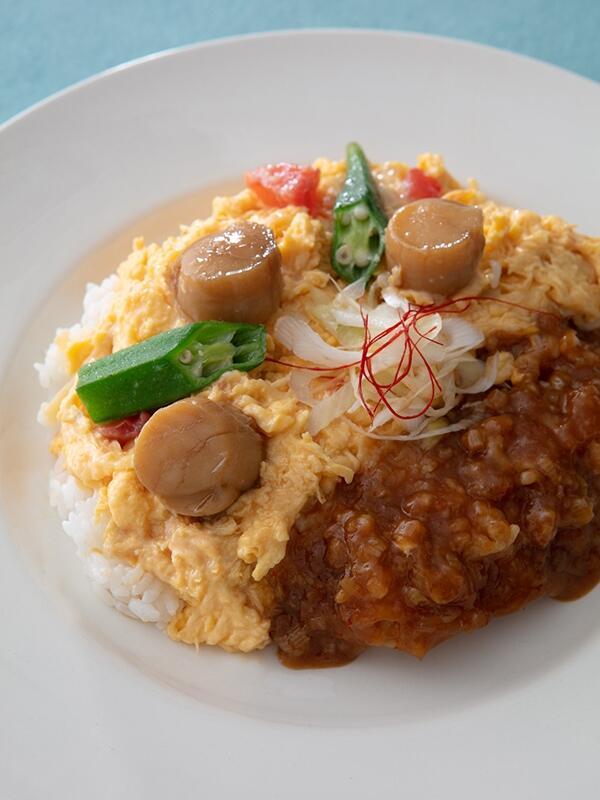 - 見た目も味わいも贅沢な「北海道産ほたての玉子チリソース丼」