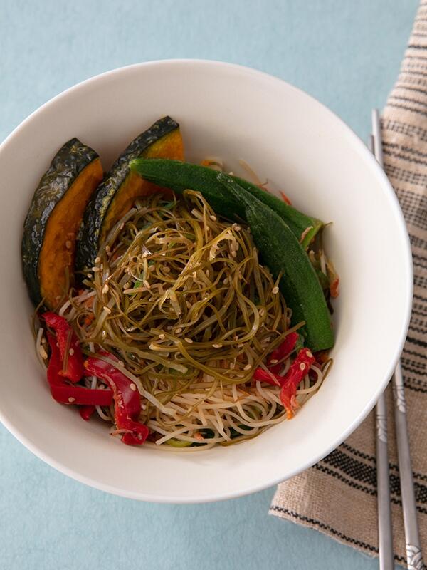 - たっぷりの炒めきざみ昆布が嬉しい「北海道産昆布と干し海老の五目ビーフン」
