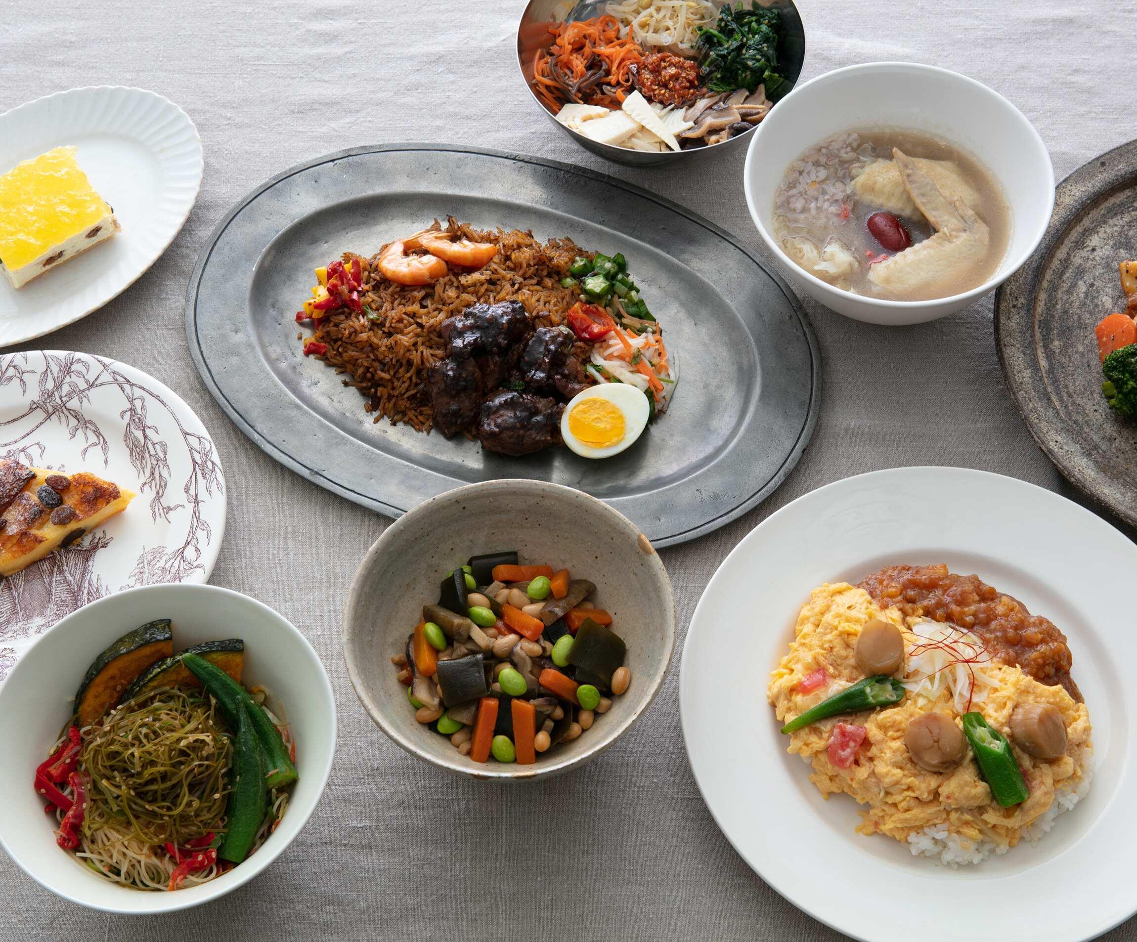 - ジャスミンライスの上に、艶やかな鶏肉“サテアヤム”、殻付き海老、人参と大根のなます、パプリカなど色鮮やかな具材がたっぷりのった、インドネシア、マレーシア発祥のナシゴレン。三河みりんの上品な甘味と香りを生かしたスパイシーソースが、全体をバランスよくまとめ上げます。(755円)