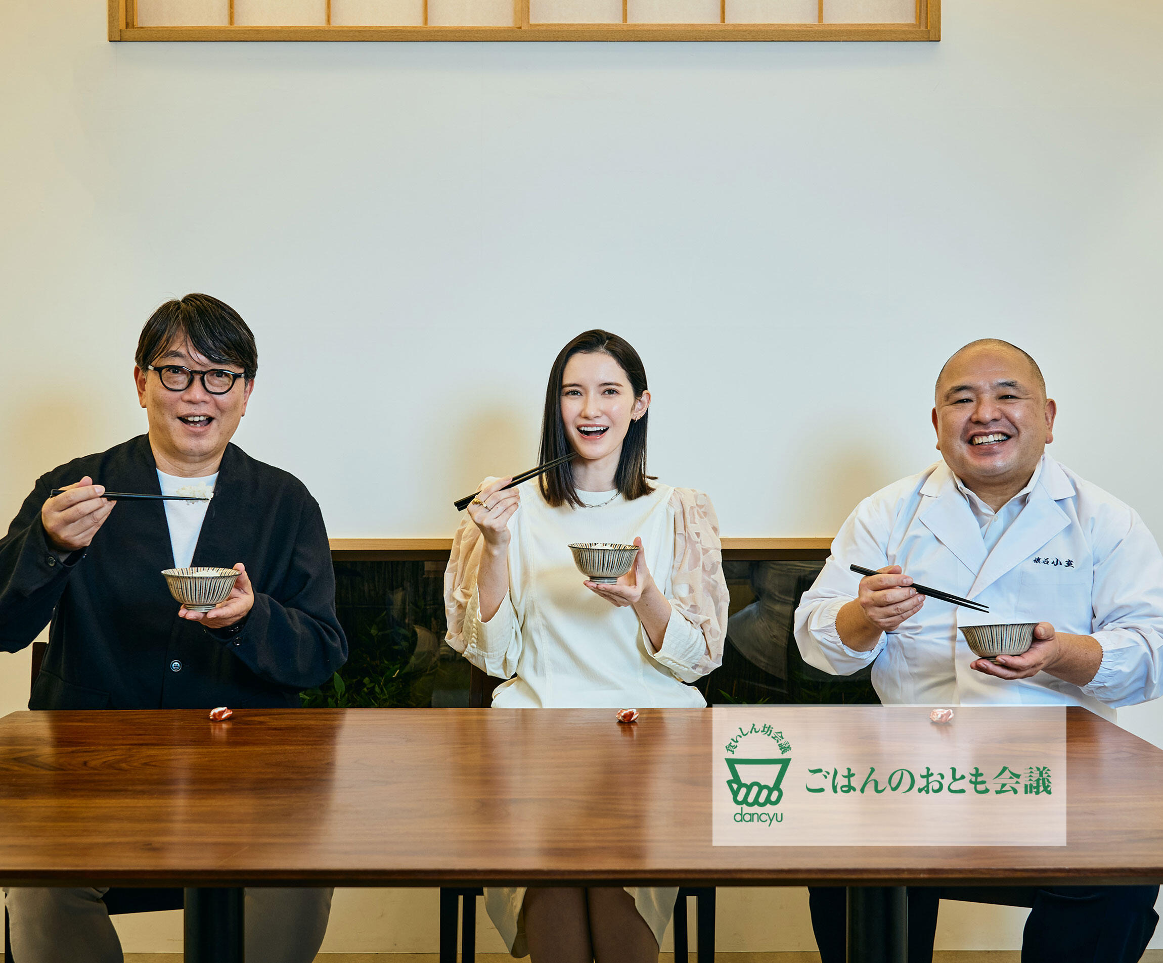 登場するのは、本誌でもおなじみの日本料理の名店「懐石 小室」の主人・小室光博さん。そして、「OTR(オン・ザ・ライス)」と称して、ごはんにのせて食べると美味しいものを日々追求する、大のごはん好きで知られるモデルの市川紗椰さん。そこにdancyu食いしん坊倶楽部部長の植野も加わり、お米を美味しく食べるための「ごはんのおとも」について熱く語り合います。