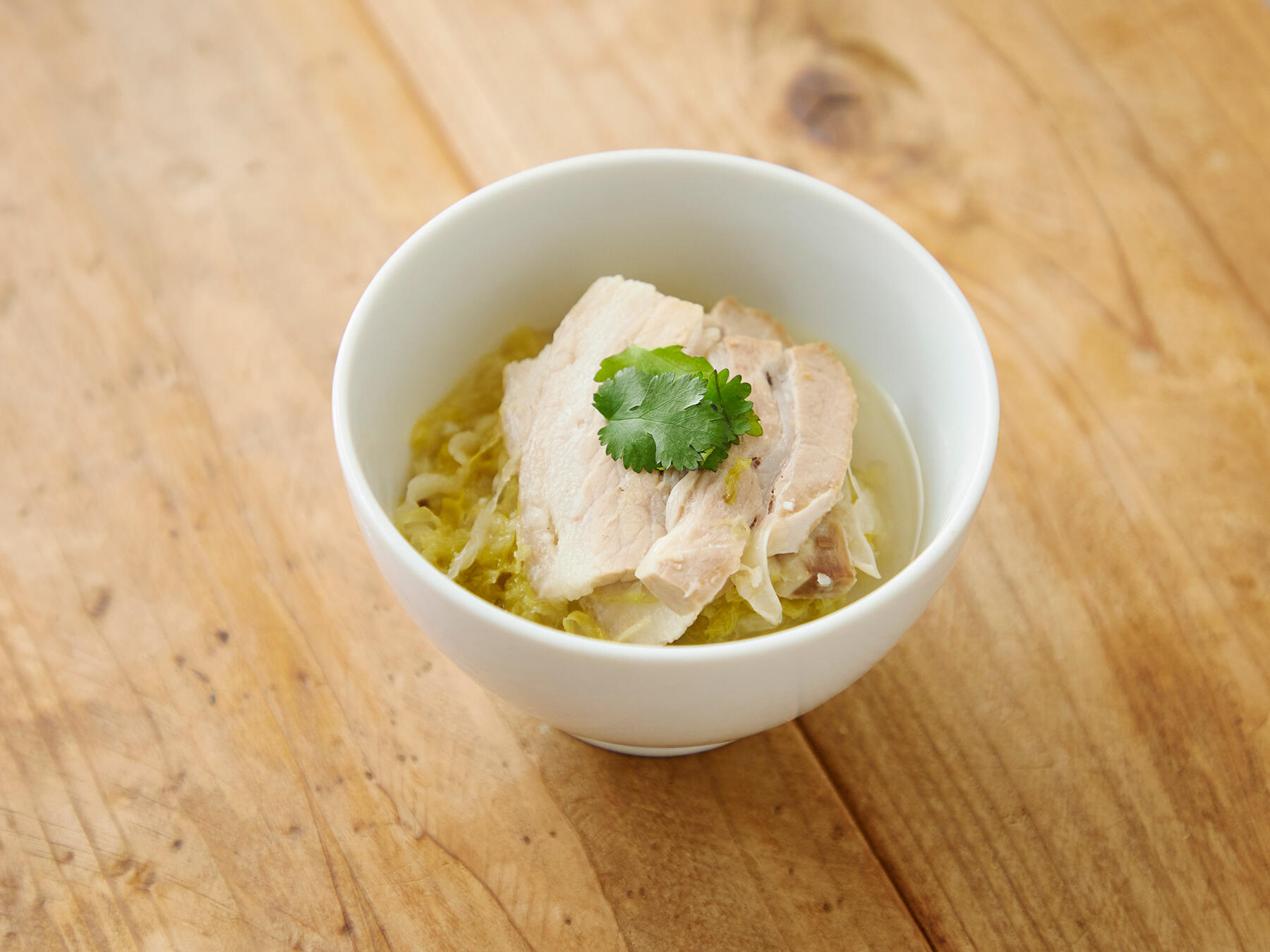 酸味と豚肉の旨味の相性が絶妙で、じんわりと体に染みわたる美味しさです。冷たい酒の飲みすぎでお腹が冷えたときにもうってつけ。