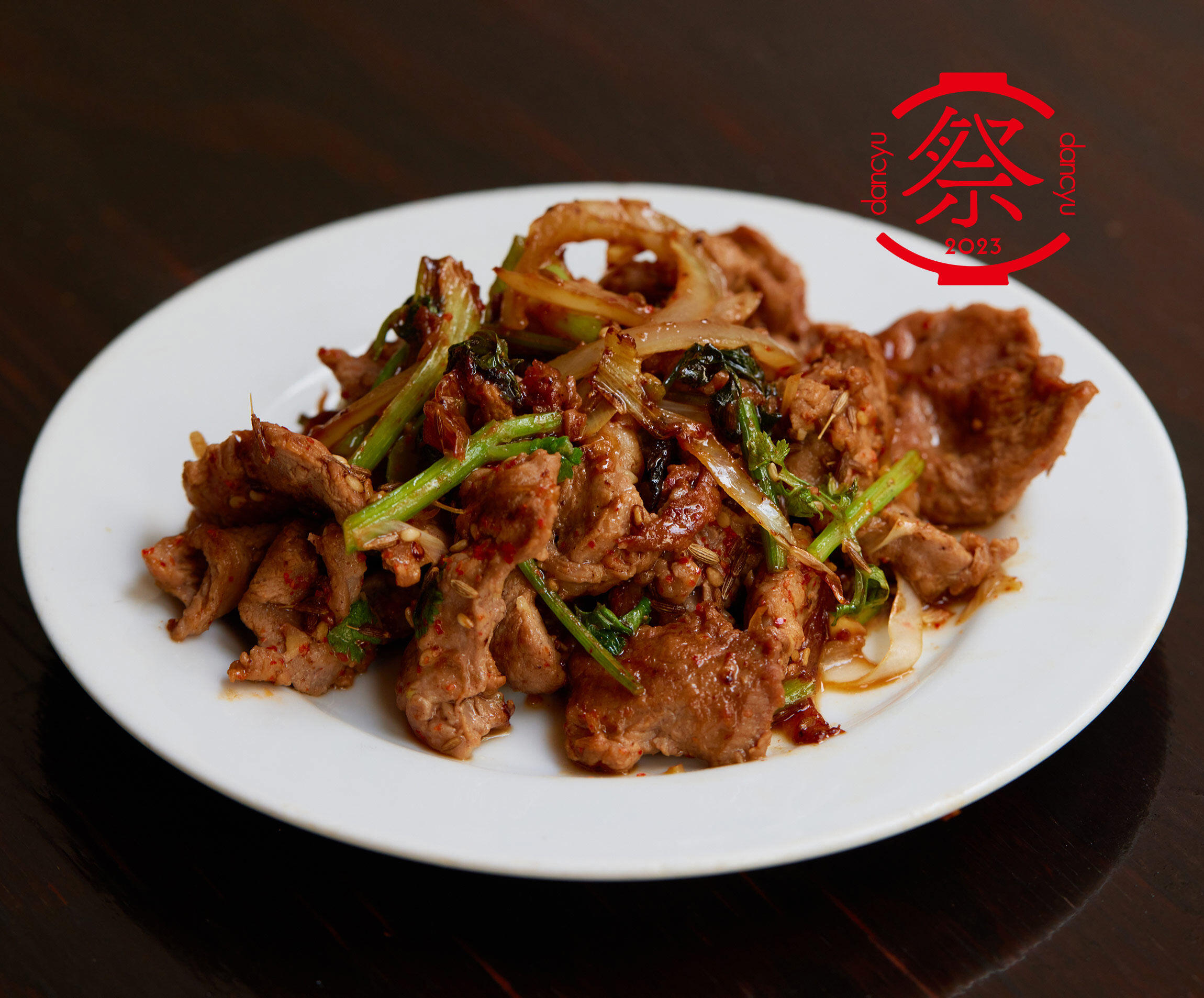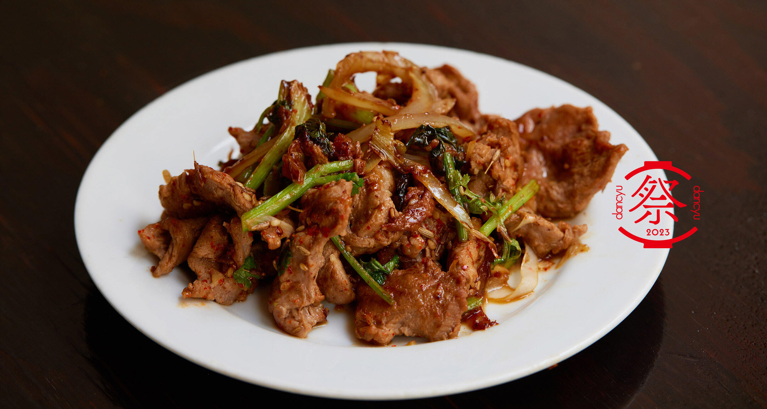 中国東北地方の家庭料理を中心に提供する同店の看板メニューである羊料理から、炙子烤肉(ラムの炒め物)を用意。羊好きはもちろん、羊が苦手な人でも食べやすく、香菜が爽やかに香る炒め物は、ビールが進むこと間違いなし!
