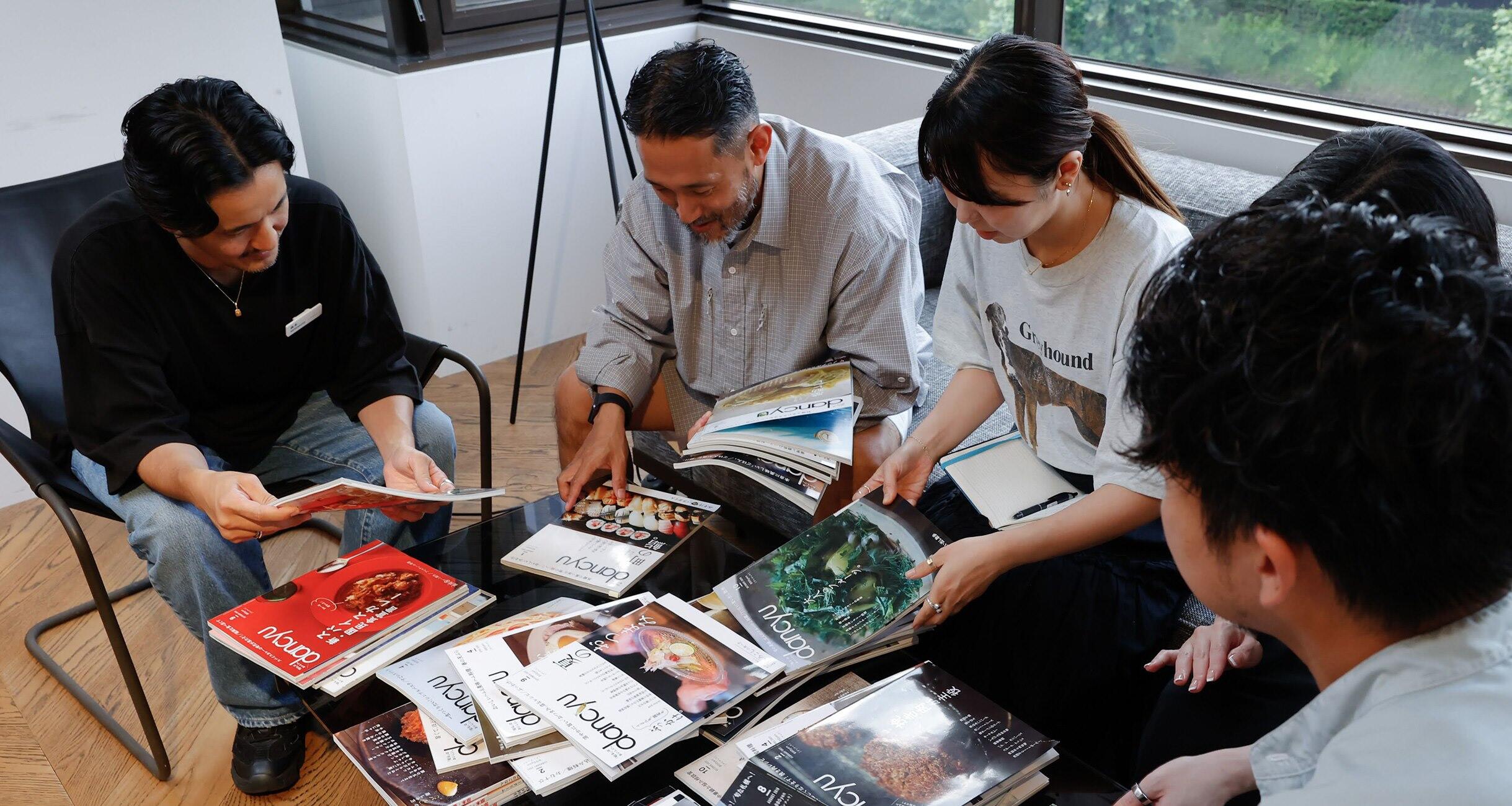 とはいえ、膨大な量のバックナンバー、今回の会議のために用意したのは計73冊。食いしん坊倶楽部のみなさんに選んでもらうには、あまりに候補が多すぎる……ということで、まずはUNITED ARROWSチームとdancyu編集部スタッフで10冊に絞ることに。