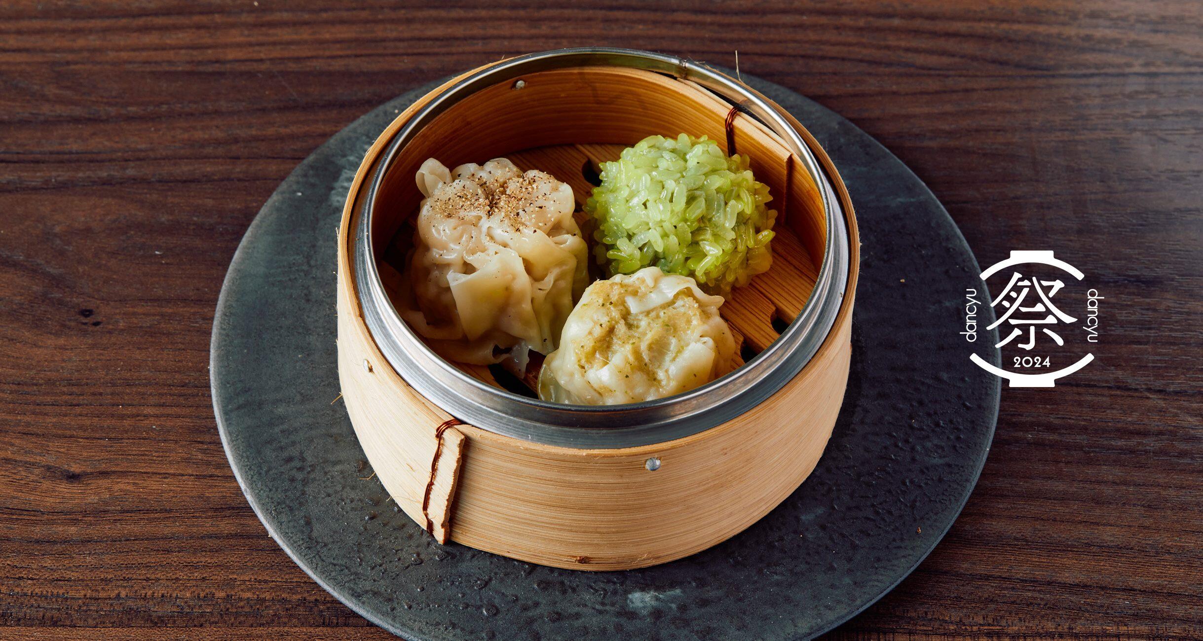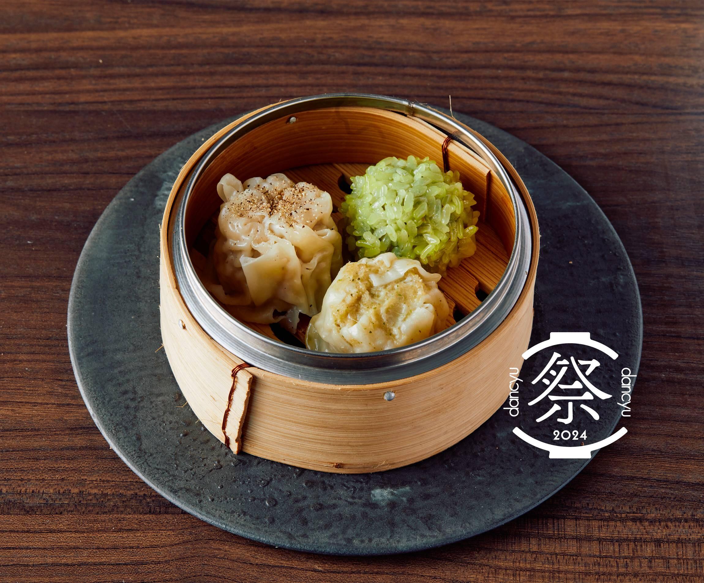 昨年大好評だった軽やかな食べ心地の“鶏肉レモングラス焼売”と濃厚な肉の旨味にピリッとアクセントを効かせた“豚肉胡椒焼売”に加えて、新登場の“餅米ラム焼売”を盛り合わせて提供する。新顔のもち米焼売は、ターメリック水につけて風味づけしたもち米を使っており、にらやラムといった強い個性を持った具材と合わさったときの重層的な香りが魅力。