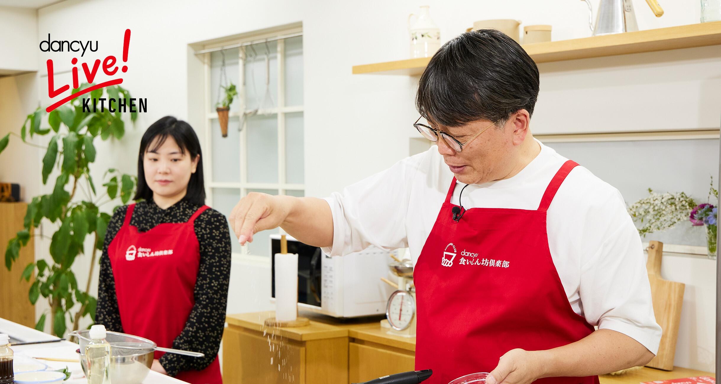「dancyu Live!キッチン」にあの男が帰ってきた!というわけで、講師として登場したのは、我らが食いしん坊倶楽部部長・植野広生。前回の出演からはなんと一年ぶりということで、配信を見ている部員のみなさんからも「楽しみにしていました!」「マスク無しが新鮮」「今日は、本物が見られます!」と、熱~いコメントをたくさんいただきました。