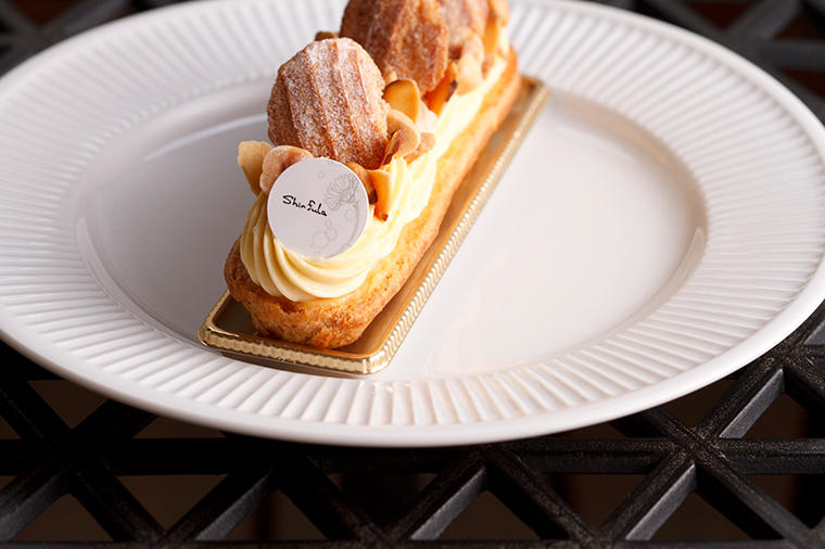 「Shinfula」のエクレアは実に独創的な見た目だ。たっぷりと搾られたクリームの上に、ナッツやシュー生地が...