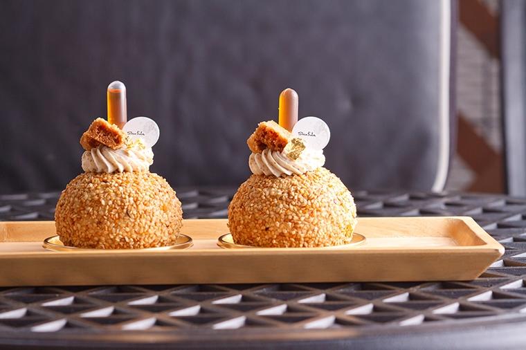 「Shinfula」のケーキ7個目は、胡麻をまとったまん丸な「ゴマ団子」。胡麻とケーキはあまり見受けない組み合...
