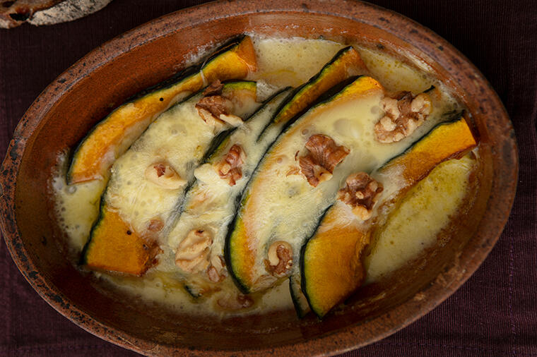芳潤で濃厚な味わい「モンドール」と焼きかぼちゃの甘味は相性抜群です。シンプルなグラタンですが、クルミ...
