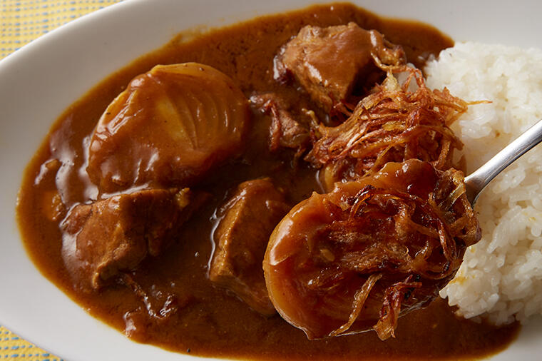 オニオンフライが深味をプラス。幾層もの玉ねぎの甘味にノックアウトすること間違いなし!いつものルウと材...