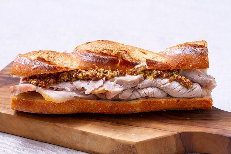 背ロースでつくったローストポークを薄切りにして、バゲットに挟んだシンプルなサンドイッチです。焼きたて...