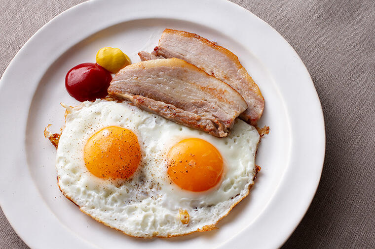 脂たっぷりのバラ肉のローストポークを薄切りにして、フライパンでカリッとするまで焼き上げます。部位ごと...