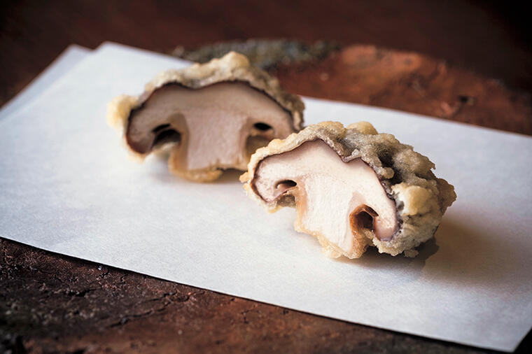 アワビを思わせるような食感と、椎茸の濃縮した旨味が美味!衣と油を駆使して、野菜のポテンシャルを引き出...
