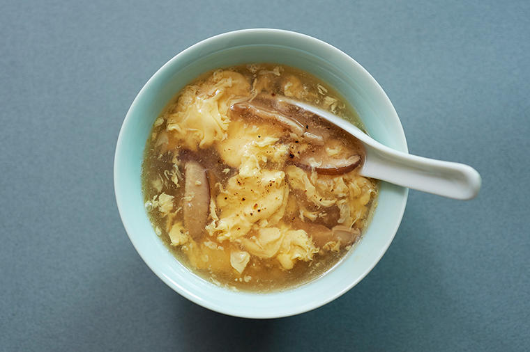 「酸辣湯」をミニマルレシピでつくります。酢、胡椒、干し椎茸、卵があれば5分ででき上がり。夏の終わりに、...