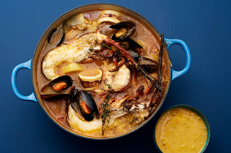 ブイヤベースは南仏の漁師町で生まれた魚介の旨味たっぷりなスープ。海老、貝、白身魚を殻や骨ごとじっくり...