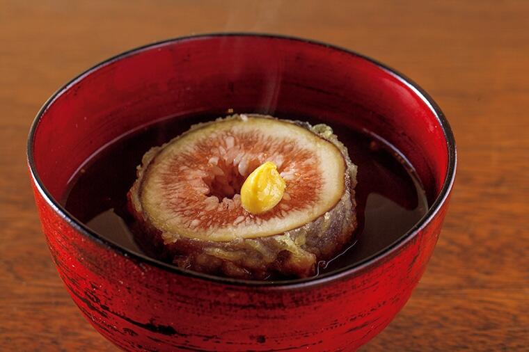 衣が果物と汁をつないだ驚きの一体感!ジューシーな味噌汁。いちじくの酸味が清々しい余韻をもたらす。満足...