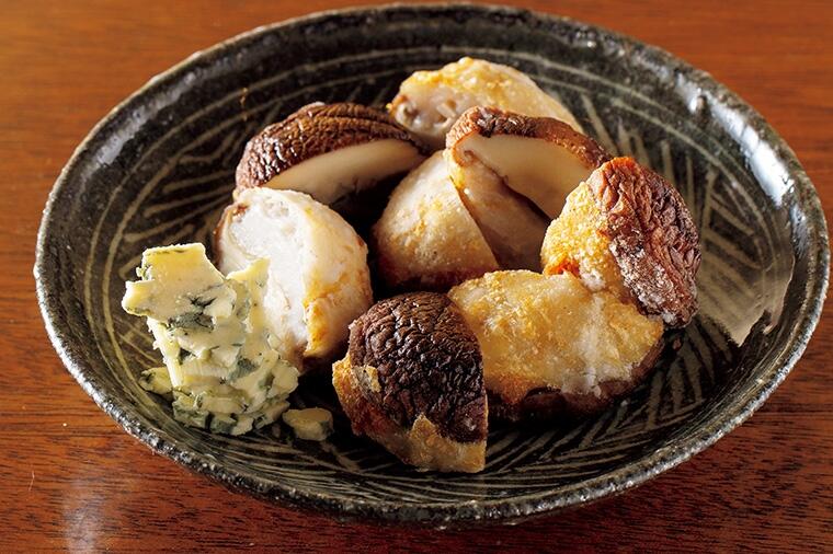 ブルーチーズがアクセントの"椎茸の里芋詰め揚げ"