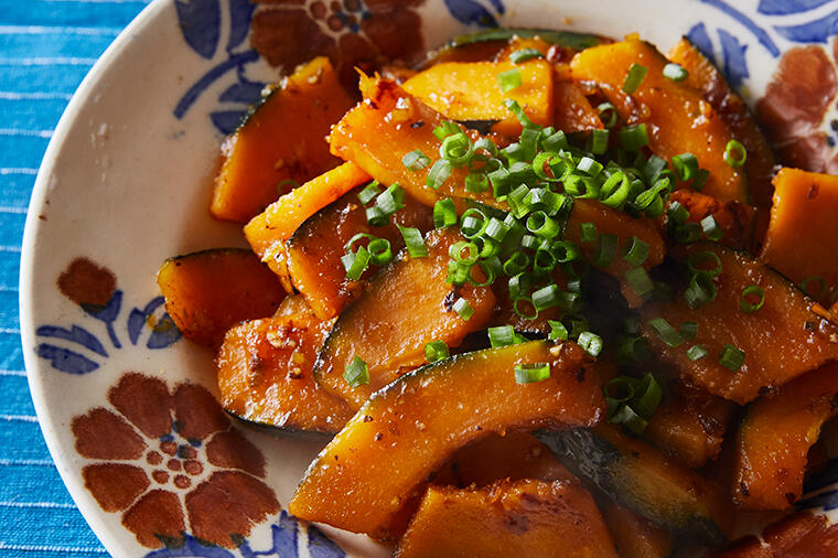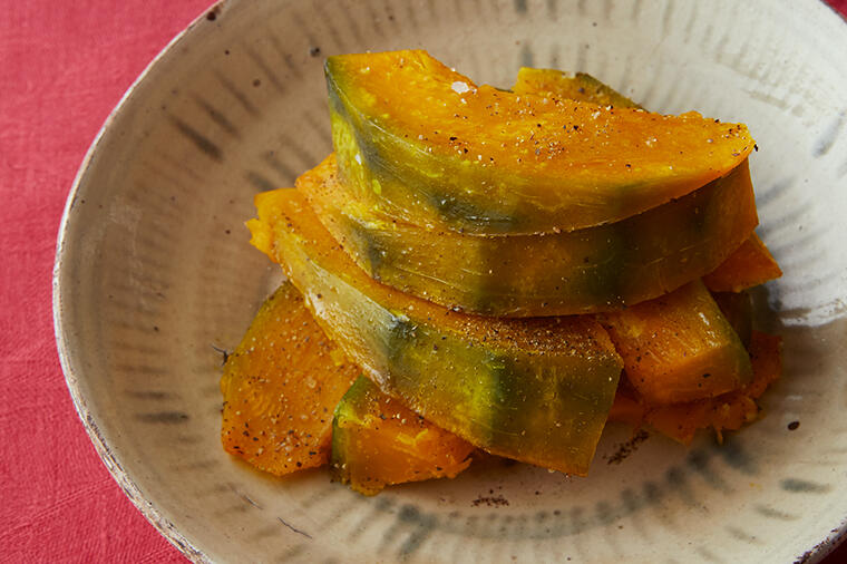「かぼちゃは日本の煮物のように甘く煮なくても、蒸すだけで十分に甘味が出ます。」と語るウー・ウエンさん...