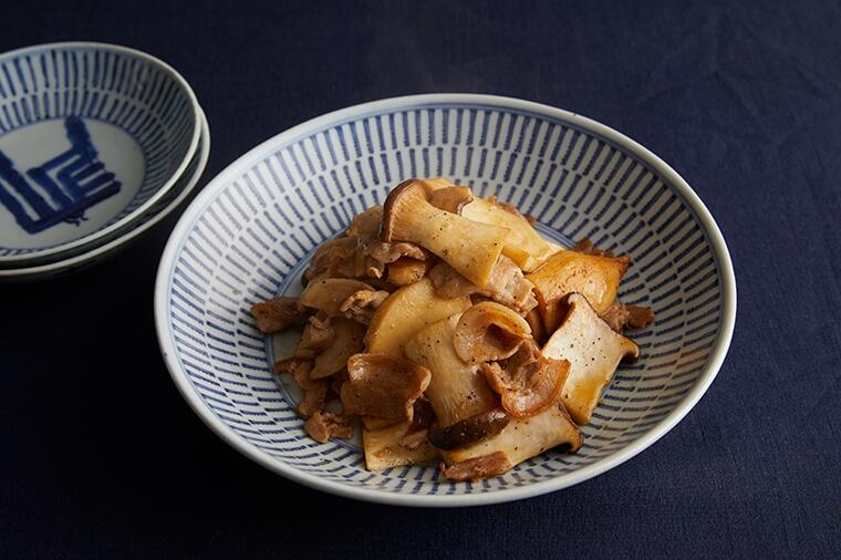 食感が魅力的なエリンギに豚の旨味をたっぷりと吸わせた一品です。醤油だけのシンプルな味つけですが、深い...