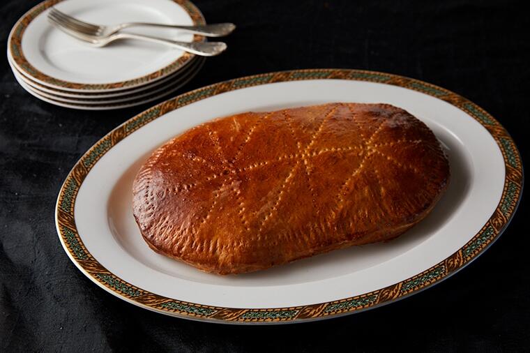 南仏でおなじみの玉ねぎのパイです。練らずにまとめたパイ生地のさっくりとした歯ざわりも心地よく、あめ色...