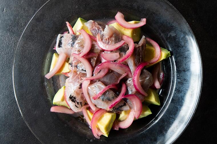 さっぱりとしたマリネにアボカドが加わることで、コクのある一品に!浅草の観音裏にあるマイクロビストロ、...