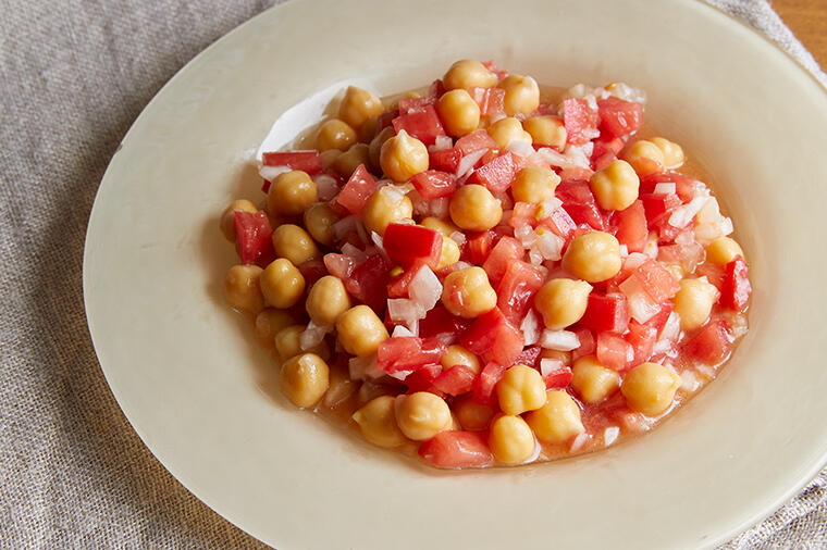 スペイン人は豆が大好き。ひよこ豆もよく食べますが、今回は野菜たっぷりのサラダ仕立てに。スプーンでざく...