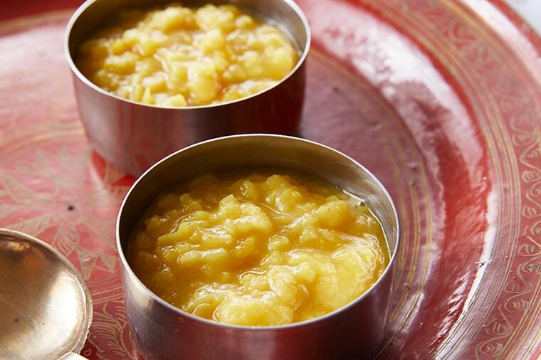 バターを煮詰めてつくる“ギー”をたっぷり使った熱々デザートです。パイナップルの香りと酸味がギーのコク...