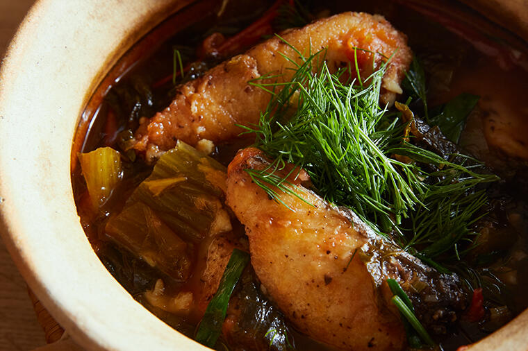 発酵した漬物とトマトの旨味が、濃厚で美味。この料理はべトナム北部独特の味つけです。料理を学ぶためにホ...
