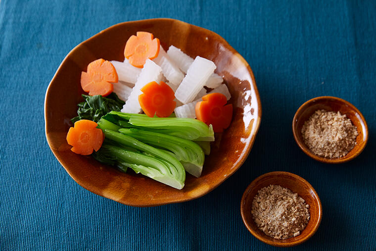 砕いたピーナッツと胡麻が、水気があるゆで野菜と合わさると、コク深く濃厚な旨味が楽しめる温野菜となりま...