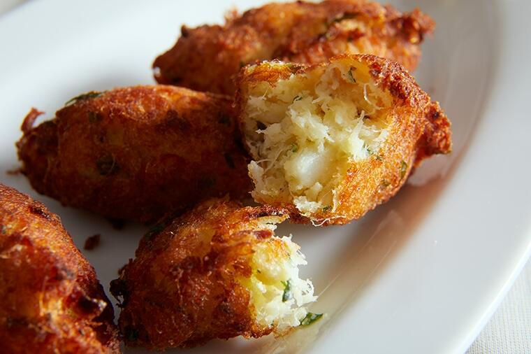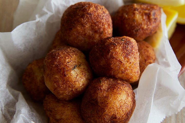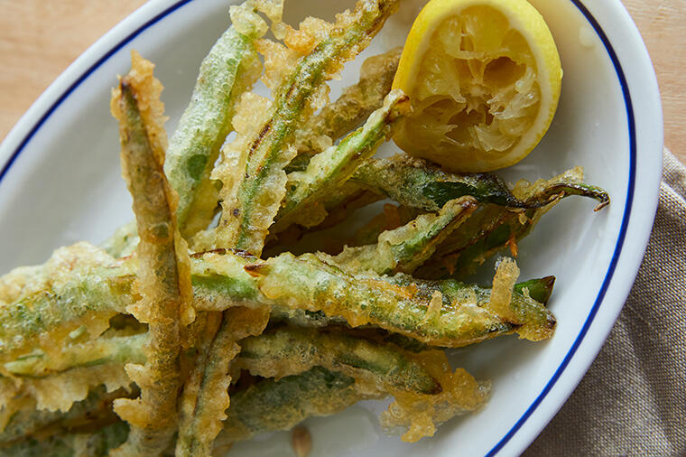 揚げたてのカリッ、フワッな衣に手が止まらない。衣にビールを使うことで軽やかな食感に。ワインを片手に、...