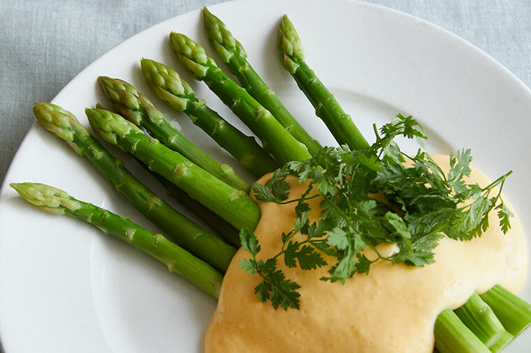 野菜を素揚げするだけ。なのにしみじみおいしい。茹でたアスパラにはない脂気のある青くフレッシュな味わい...