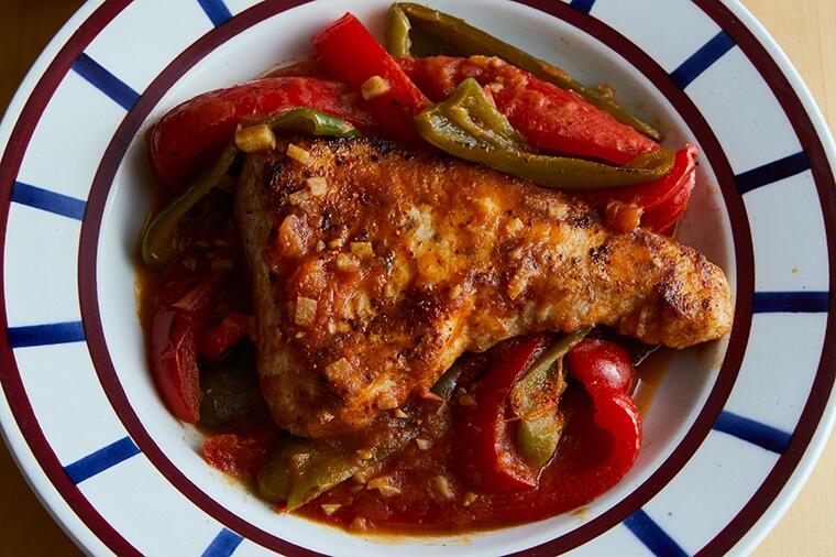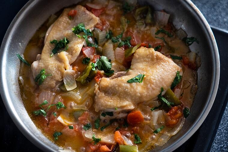 鶏肉の表面を焼き固めたら、野菜と自家製調味料のトマトクリュを加えて煮込むだけ。夏にぴったりの、酸味が...