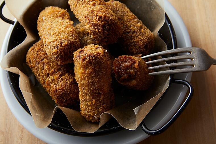 スパイスの効いた肉団子が、トマトソースの甘味と調和します。小鍋ながら満足感たっぷりで、飲みのメインに...