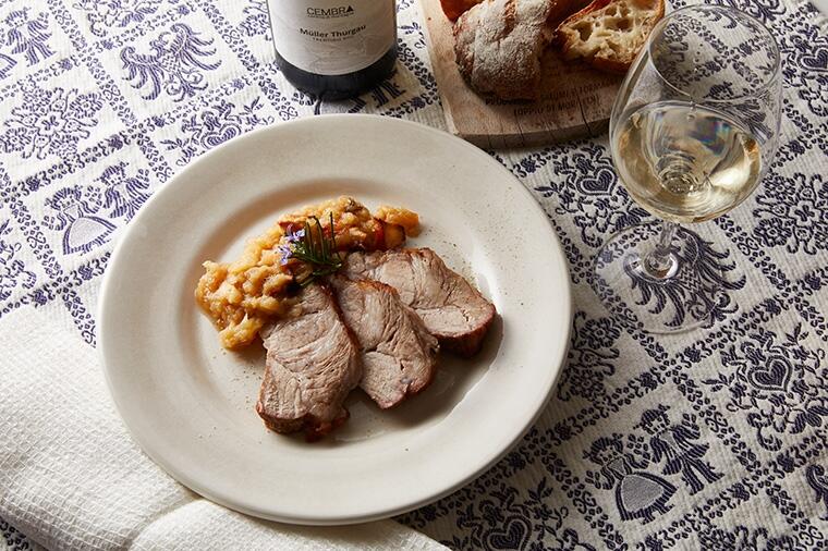 しっとりとした豚肉に、りんごの酸味と甘味が絶妙に絡まります。乳製品や米、生ハムといった特産品を使った...