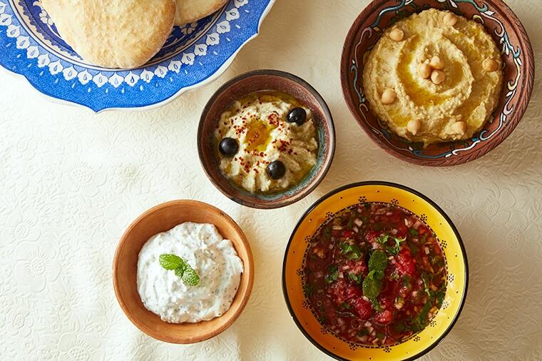 トルコには、食材や味わいが多彩なメゼ(前菜)がたくさんあります。パンをディップしたり、肉と合わせたり...