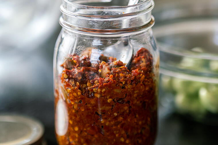 豆板醤の原料は、そら豆と唐辛子、塩。そら豆の発酵と乾燥さえうまくいけば、簡単に仕込むことができるんで...