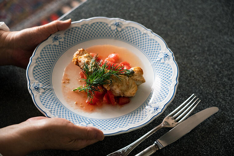 ソテーした白身魚に、フレッシュな味わいのトマトクリュを添えるだけで、メインの一皿になります。料理研究...