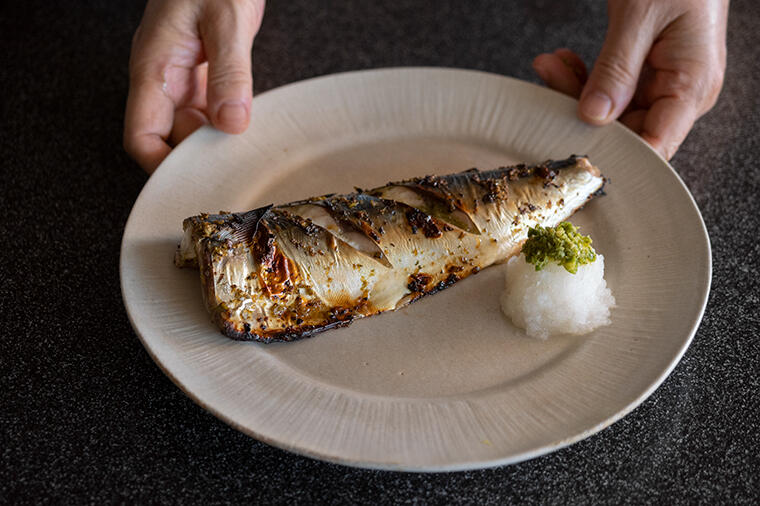 醤油と味噌の風味がバランスよく合わさった幽庵焼きです。ぜひ熱めにお燗した一杯と食べてみてください!