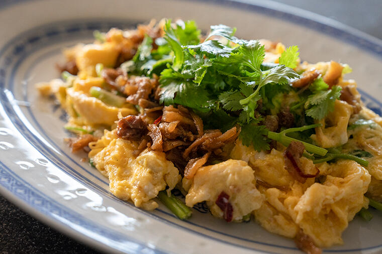 卵にもXO醤を溶き入れ、さらに追いXO醤をするという旨味に旨味を重ねた一品です。料理研究家の荻野恭子さん...