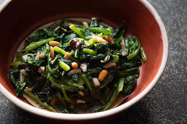 アンチョビとにんにくの風味が、冬にたっぷりと栄養を蓄えたほうれん草の優しい甘さとよくなじんで、ホッと...