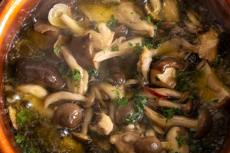山盛りのきのこを使った、香りと旨味たっぷりのアヒージョです。いろいろな味がしみ出たオイルもおいしいの...
