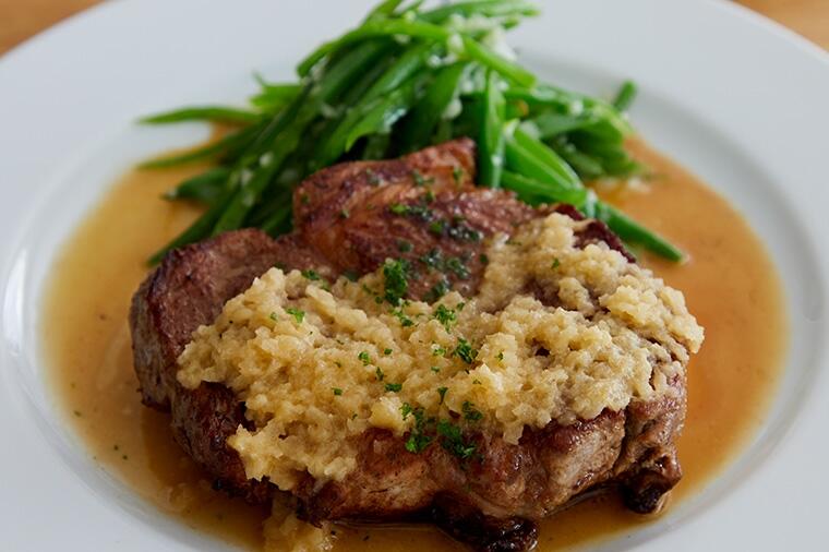 豪快に焼いた豚肉に、りんごとバターのソースを合わせるという何とも贅沢な一品。洋食をこよなく愛する坂田...