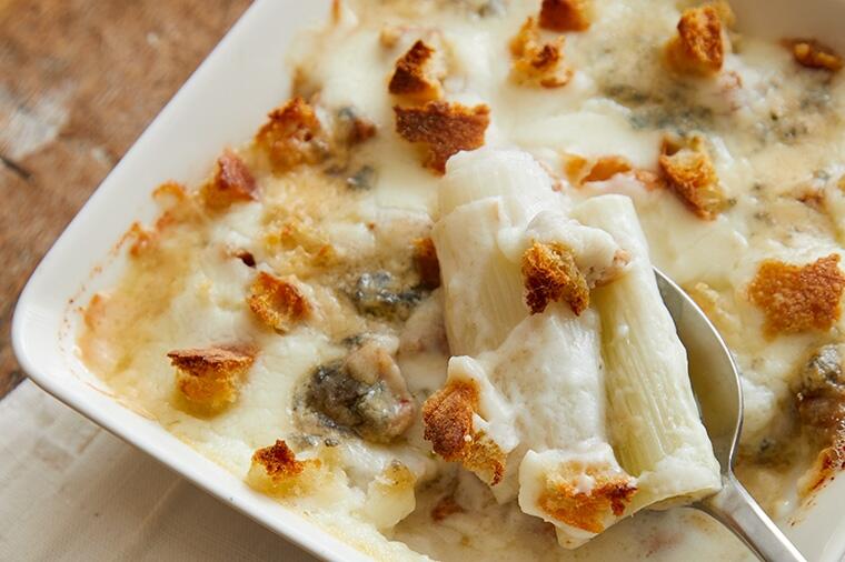 やわらかく煮た冬の長ねぎが美味。ベシャメルソースとブルーチーズで味わいます。人気料理研究家のサルボ恭...